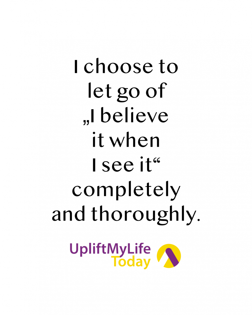“I believe it when I see it” is a belief that is fear-based, and keeping it feeds the doubt and fear that keep us separated from the Universe.